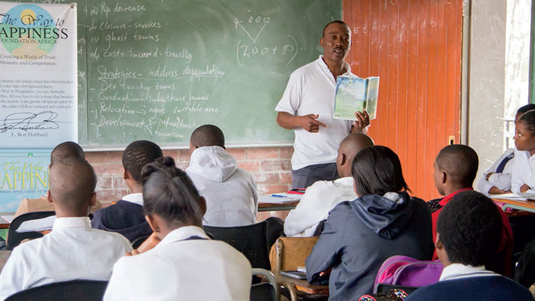 Em 2010, Mahalba regressou à sua casa em KwaZulu-Natal para começar sua nova vida instilando nos jovens os valores morais de O Caminho para a Felicidade. Seu primeiro trabalho foi numa sala de alunos do último ano do ensino médio repleta de drogas, violência e um alto índice de gravidez. Ao ensinar os 21 preceitos, a violência começou a se dissolver. No fim do ano, os resultados das provas tinham aumentado em 38 por cento e a violência caído para zero. O Departamento de Educação imediatamente autorizou Mahalba a apresentar o programa em todas as 400 escolas do Distrito de Umzinyathi, nas quais os alunos o apelidaram de “Sr. Felicidade.”