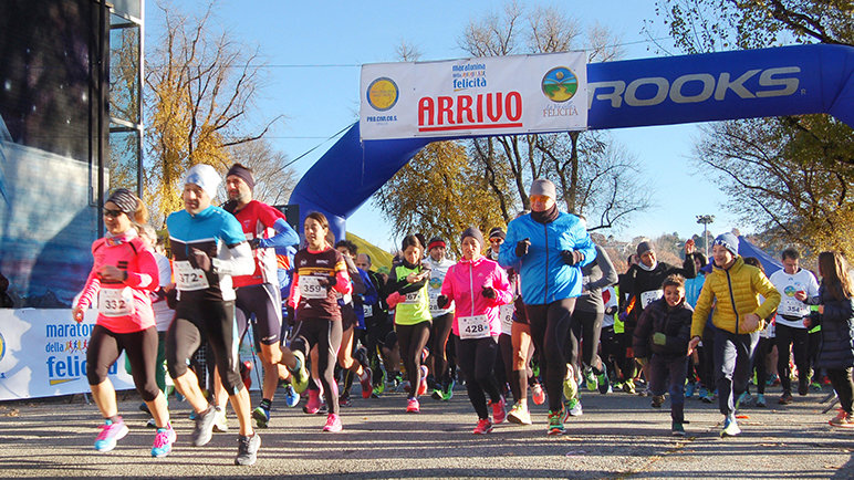 Em 2014, Simone Leo, um famoso ultra maratonista italiano e um defensor de O Caminho para a Felicidade, marcou para Giuseppe um encontro com o Presidente da Federação Italiana de Esportes Amadores. Foi esse encontro que inspirou a ideia da Meia Maratona de Turim de O Caminho para a Felicidade. A data foi marcada para novembro daquele ano, com divulgação de seu lançamento em um estande de O Caminho para a Felicidade em outra maratona.